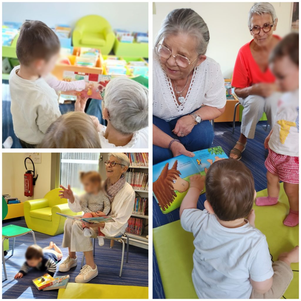 Une fois par mois, à la bibliothèque, des bénévoles nous racontent des histoires en petit groupe.